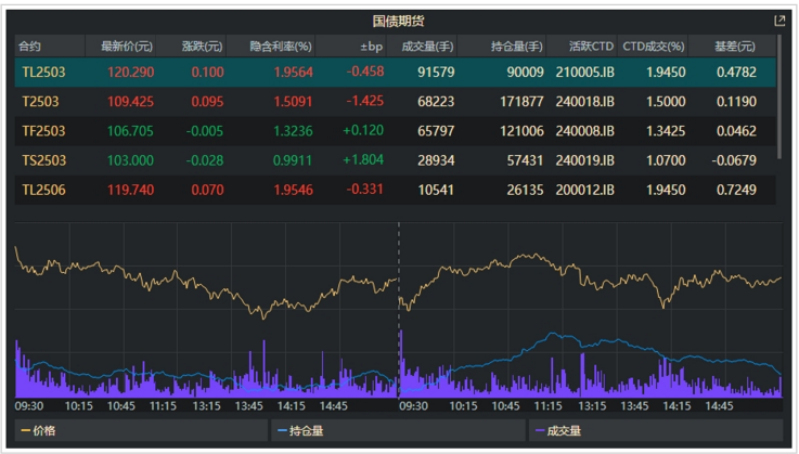 国债期货收盘涨跌互现,30年期主力合约涨0.08%,10年期主力合约涨0.09%,5年期主力合约收平,2年期主力合约跌0.03%。