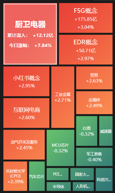 板块题材上,厨卫电器、CPO、小红书概念、工业金属板块涨幅居前,半导体、人形机器人概念跌幅居前。