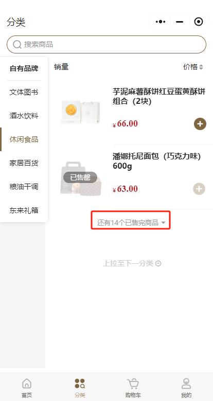 在小程序上可以看到,一些热门的品类均显示售罄,比如DL精酿小麦啤酒、DL水蜜桃汁、晋式蛋月烧月饼、潘娜托尼面包等,甚至晚些时候再看,所有上架的商品全部处于售罄状态。
