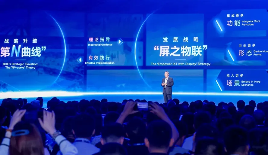 陈认为,京东方的下一个三十年,要在“半导体显示技术、玻璃基加工和大规模集成智能制造”之上,探索“第N曲线”,来打破半导体显示行业的增长天花板,推动公司实现“万亿美元”的市场规模。
