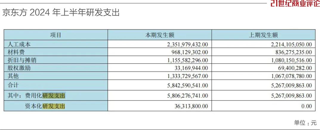 2024年上半年,京东方研发投入为58.4亿元,同比增长10.9%,其正加大对AI等技术的研发投入。