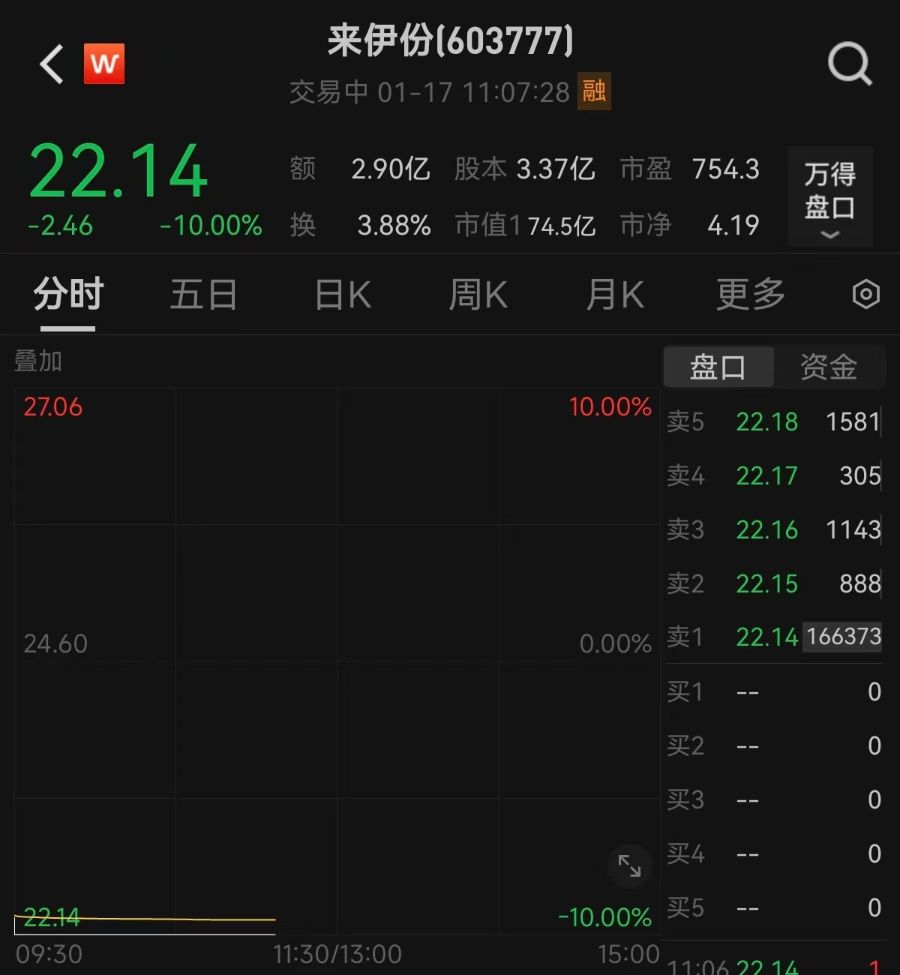 不过,微信小店板块的龙头股来伊份(603777.SH)今日却录得跌停。该股于昨日晋级6连板,近19个交易日内已实现12次涨停。