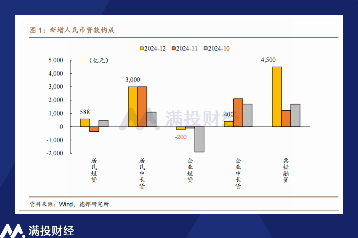 但随着“化债主题”运行了11个月后,其成果在12月也算有所显现。12月在政府债券同比增速维持高位的背景下,住户贷款的同比增速同比迎来改善,而人民币贷款的少增情况也较前11个月有了较大改善。12月住户人民币贷款环比增加约3500亿元,余额同比增长约3.4%,增速较前月提高超过0.1个百分点,逐渐体现出筑底的趋势。