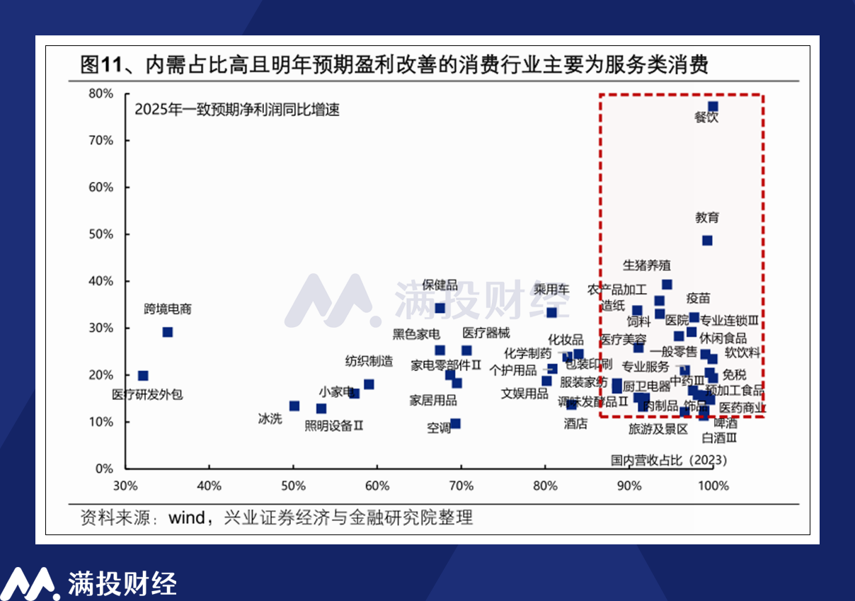 从2024年末汽车、家电以旧换新政策的出台与延续来看,目前政府对内需拉动已经开始持续执行,且从成果来看也确实明显。近期“两重”和“两新”财政支持范围或扩大,将消费电子产品纳入了补贴范围内,进一步拉高市场的商品消费需求。展望后续,政府在该领域的政策力度或进一步加大。考虑到商品周期以及补贴边际效率的下降,后续诸如餐饮、娱乐等服务业的消费补贴同样有望提上日程,改善相关企业的利润。