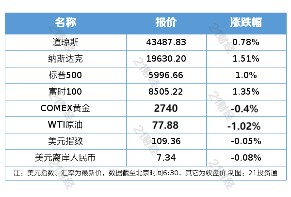 纽约股市三大股指1月17日集体上涨。纳指涨超1.5%。截至当天收盘,道琼斯工业平均指数比前一交易日上涨334.70点,收于43487.83点,涨幅为0.78%,上周累涨3.69%;标准普尔500种股票指数上涨59.32点,收于5996.66点,涨幅为1.00%,上周累涨2.91%;纳斯达克综合指数上涨291.91点,收于19630.20点,涨幅为1.51%,上周累涨2.45%。