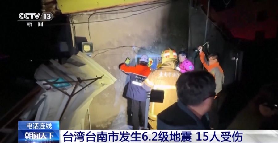 中国地震台网正式测定,今天0时17分,台湾台南市发生6.2级地震,震源深度14公里。台湾消防部门表示,目前共有15人受伤被送往医院就医。