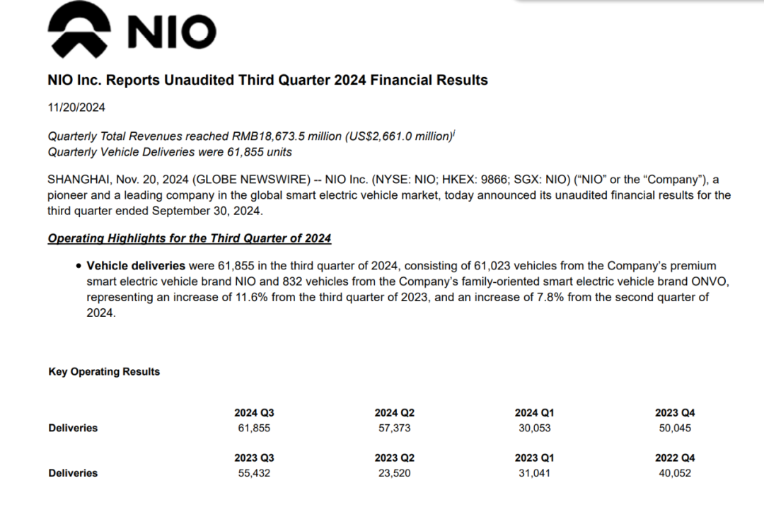 亏损的背后,蔚来的销量却在上升。去年第三季度,蔚来汽车交付量为61855辆,达到历史新高。但营收却出现了下滑,仅为186.735亿元,同比下滑2.1%。
