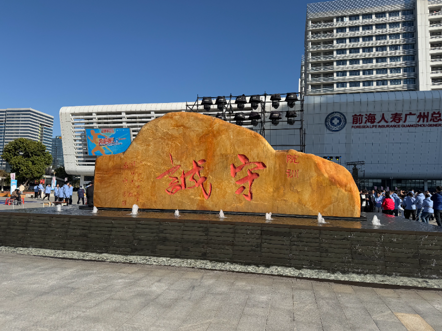 (前海人寿广州总医院内刻有“守诚”的大石)