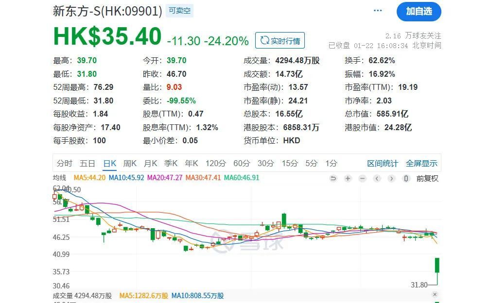 1月22日,该公司股价大跌24%,市值一天蒸发超180亿港元,缩水至586亿港元。