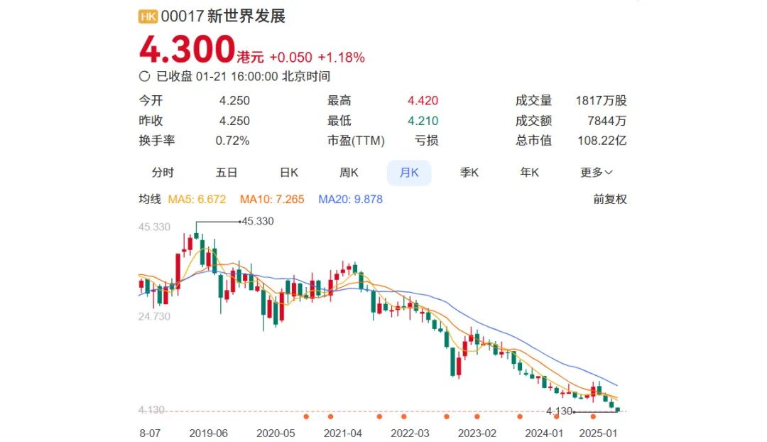 开年以来,新世界股债持续下行,百亿左右的市值,处于20年来的低位,多家知名机构预测悲观。