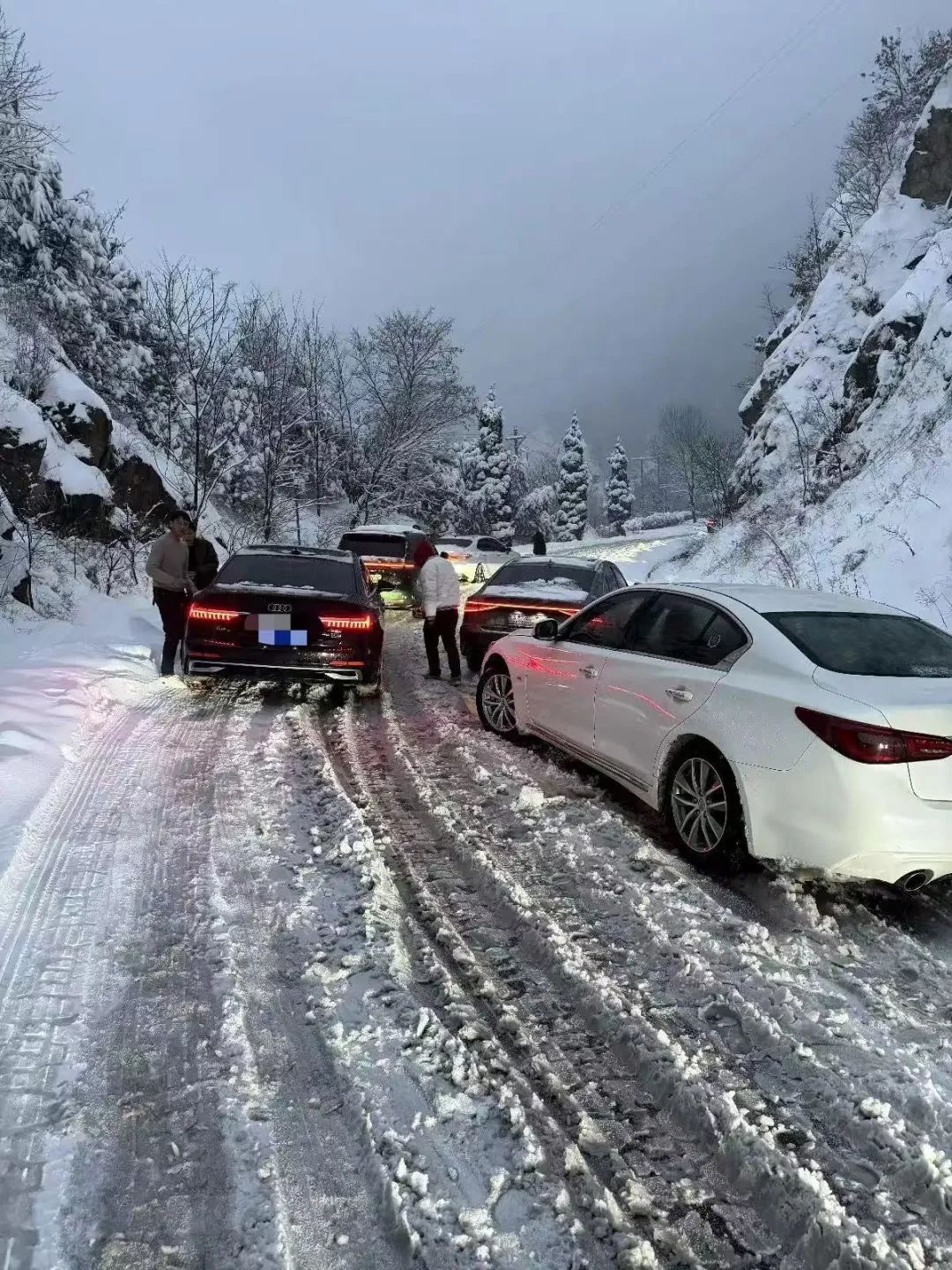 山路上被困车辆 图源:九派新闻 受访者提供