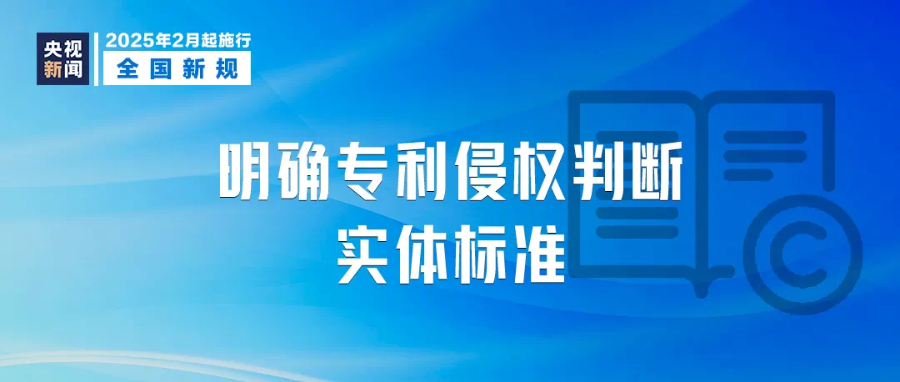 《专利纠纷行政裁决和调解办法》自2月1日起施行。其中明确专利侵权判断实体标准,对专利权保护范围、全面覆盖原则、禁止反悔原则、捐献原则、相同侵权和等同侵权等作出规定。
