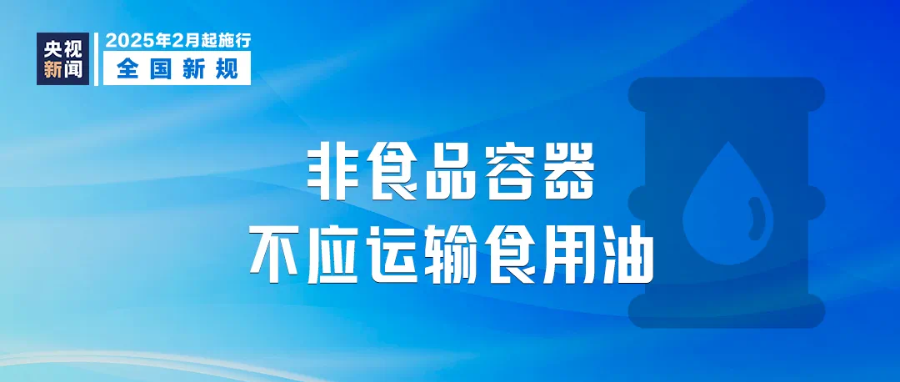 强制性国家标准《食用植物油散装运输卫生要求》自2月1日起实施。标准规定,食用植物油散装运输应采用食品专用容器,应在容器外显著位置明显标识“食用油专用”或“食品专用”字样,容器内外均应干净卫生;运输非食品的容器不应运输食用植物油。
