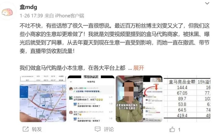 讽刺的是,刘雯一边通过直播带货赚取高额佣金,一边指责其他企业佣金过高、不合理加价。去年,她发视频指责某平台的代购商家“溢价35%到50%不等”“骗我五六十你才满意”“多则将近100块钱”。后经核实,代购商家最高溢价率为21.7%,5笔订单只多赚了刘雯14.53元。这位商家在社交平台称,自己遭遇了刘雯发动的网暴,刘雯一直在撒谎误导大众,直播带货收割流量。