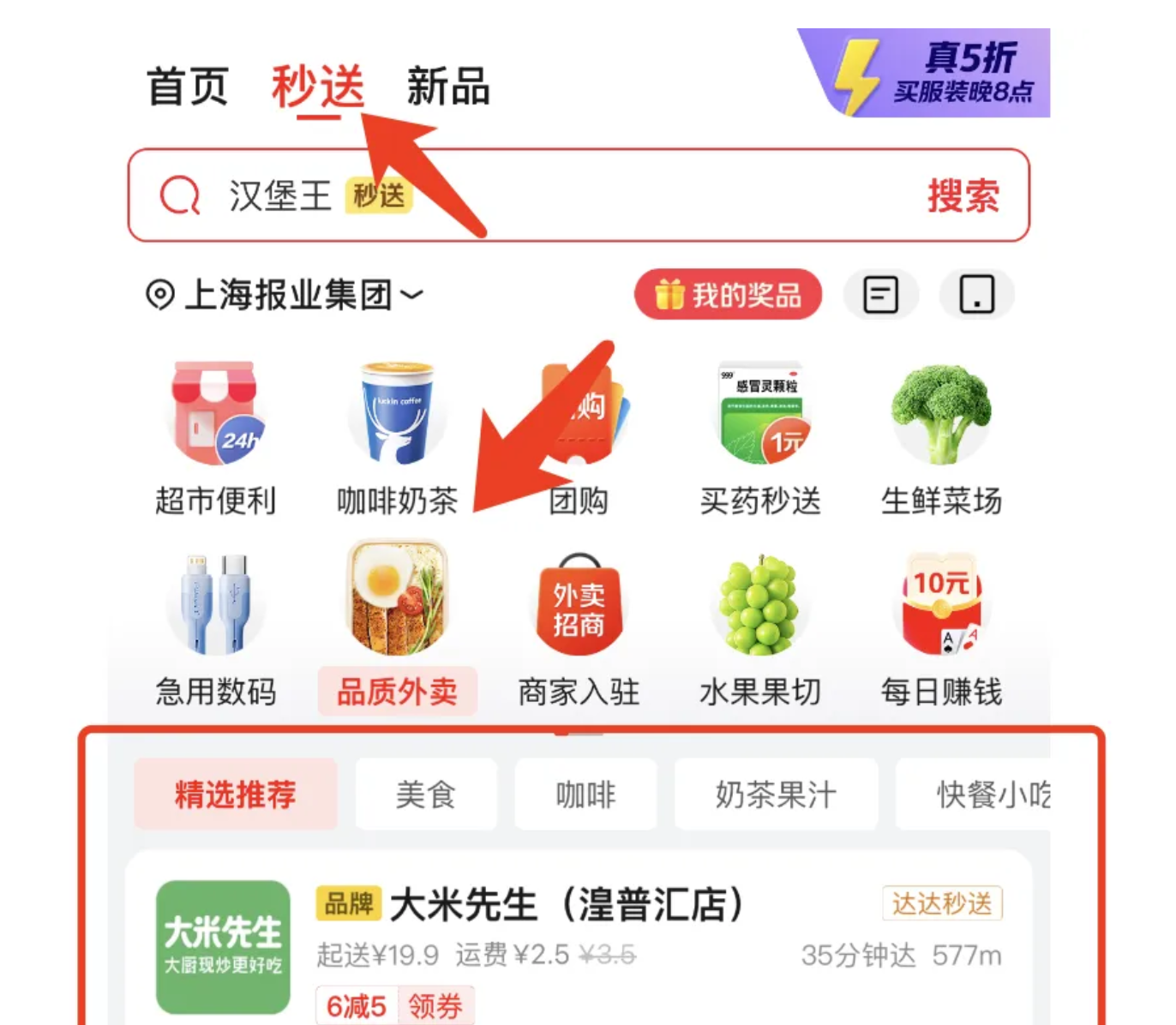 蓝鲸记者查询发现,目前京东外卖尚未上线独立app,而是以“品质外卖”的名称整合至京东app“秒送”频道中,与咖啡奶茶、生鲜菜场、团购等栏目并列呈现。