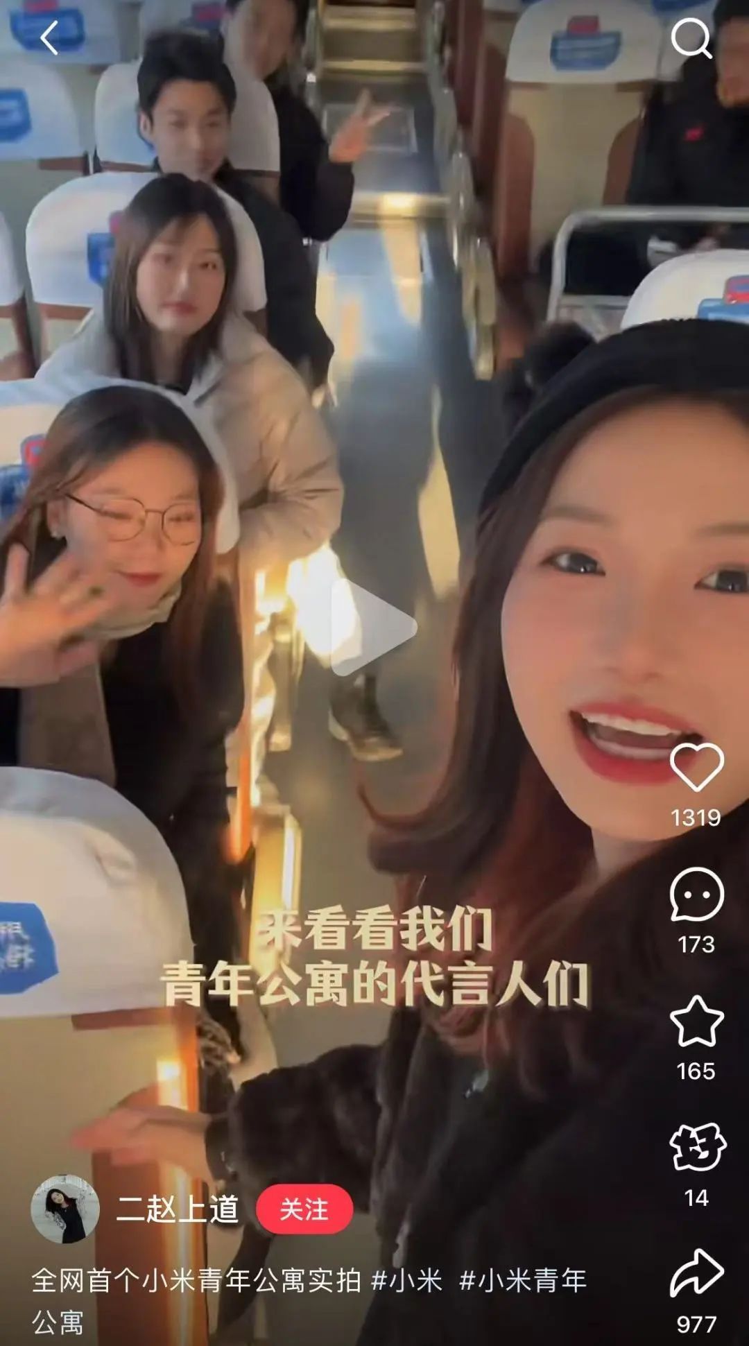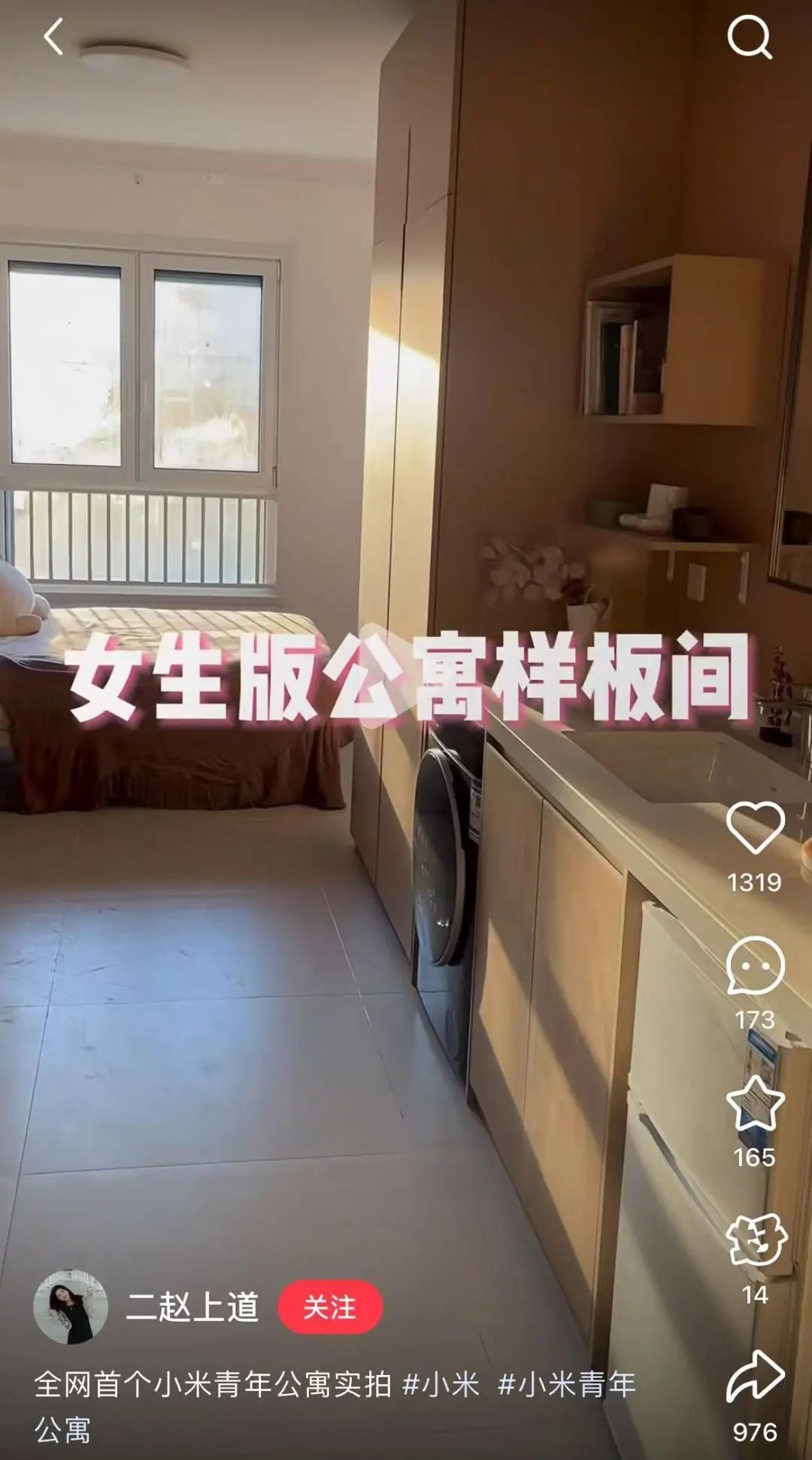 近日,小米市场部管培生赵长琳(抖音、小红书昵称“二赵上道”)在其社媒上发布了一则视频,其与多位年轻的小米员工作为“内部代言人”,一同参观了即将开业的小米青年公寓。