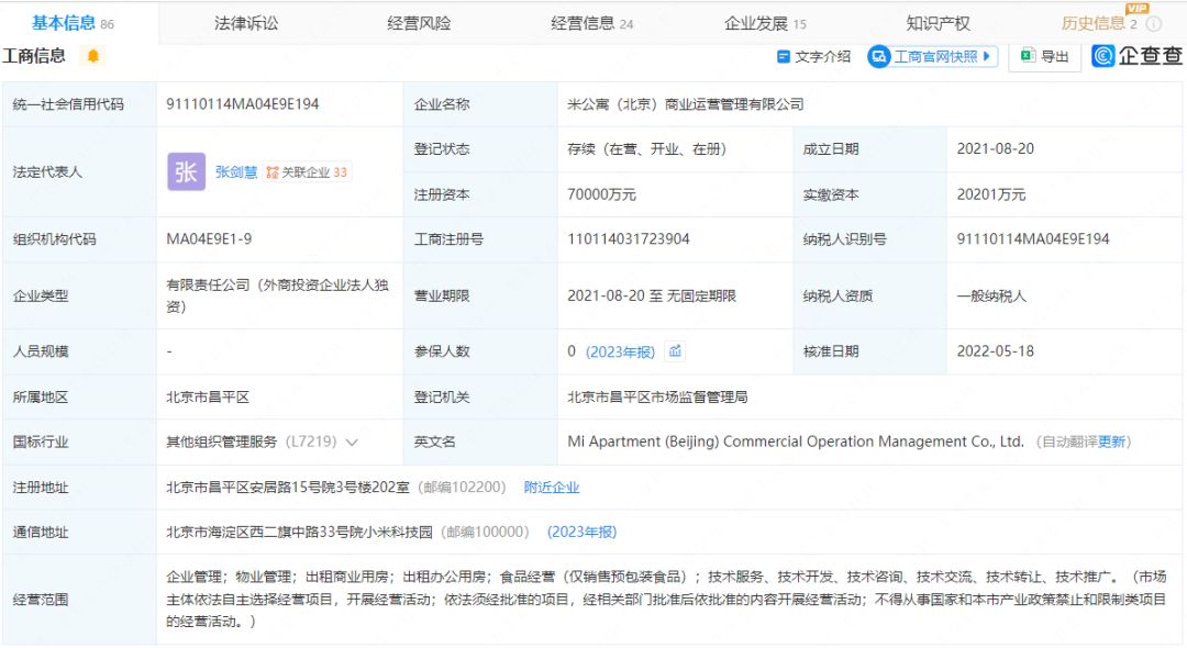 虽然首次试水长租公寓并不成功,但并未浇灭雷军的“公寓梦”。2021年,小米斥资7亿元成立了全资子公司米公寓(北京)商业运营管理有限公司,正式涉足长租公寓业务。彼时,此消息一经传出,网友们纷纷议论小米要做房地产了,小米公关部王化也不得不在微博上公开辟谣,表示此举只是为了运营小米员工的公寓,提升员工幸福感而已。
