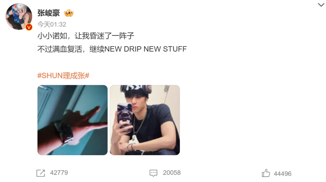 2月22日,艺人张峻豪发文称自己因为感染诺如病毒昏迷了一阵子,引发网友担忧。