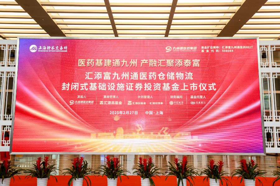 2月27日上午,汇添富九州通医药仓储物流封闭式基础设施证券投资基金(简称“汇添富九州通医药REIT”,基金代码:508084)在上海证券交易所举行上市仪式。