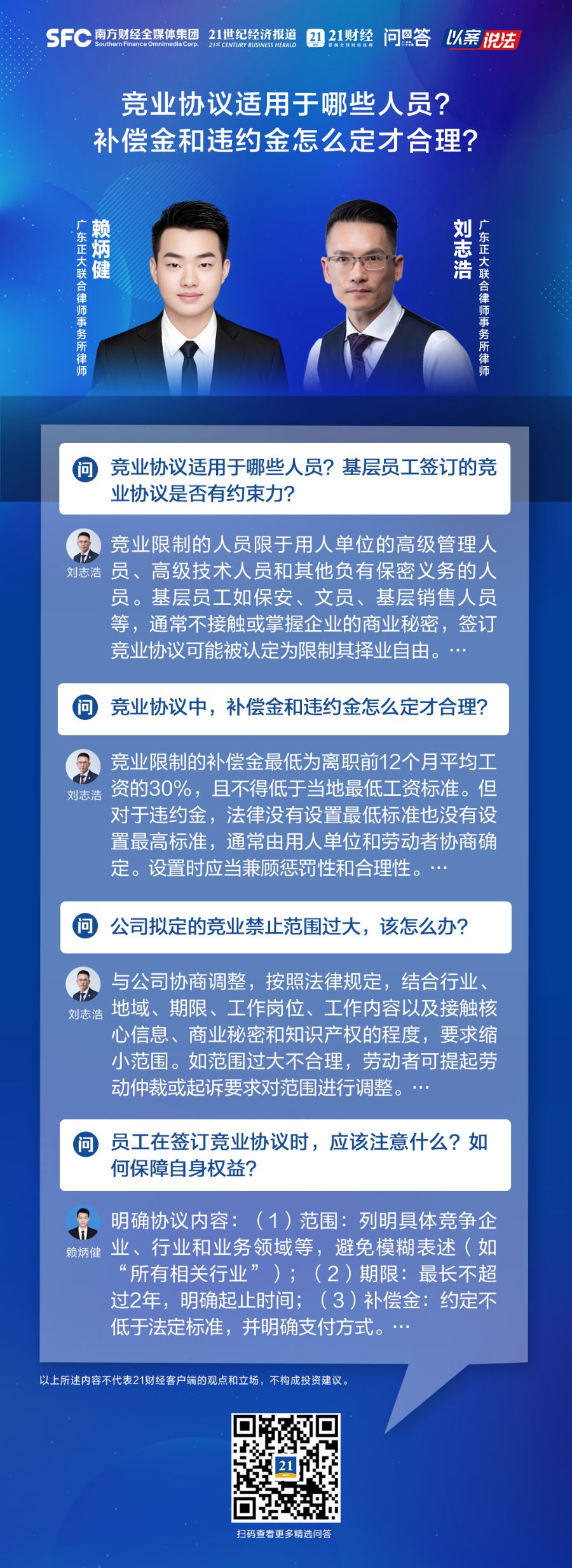 那么,竞业协议究竟适用于哪些人员?关于补偿金和违约金,怎么定才合理?今天,我们邀请到了广东正大联合律师事务所刘志浩律师、赖炳健律师,为我们逐一解答,希望能帮您解开疑惑。
