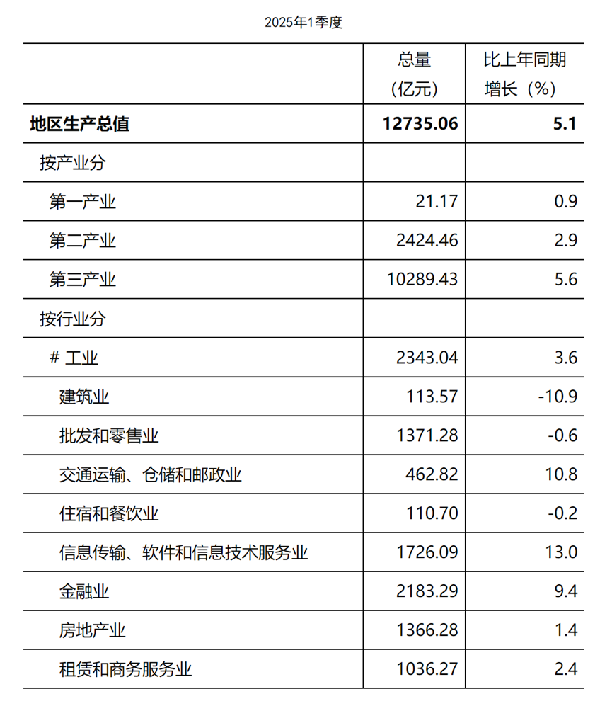 4月23日,上海发布一季度经济数据。一季度上海全市实现地区生产总值12735.06亿元,按不变价格计算,同比增长5.1%。