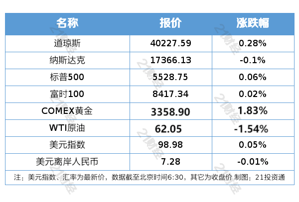 隔夜外盘