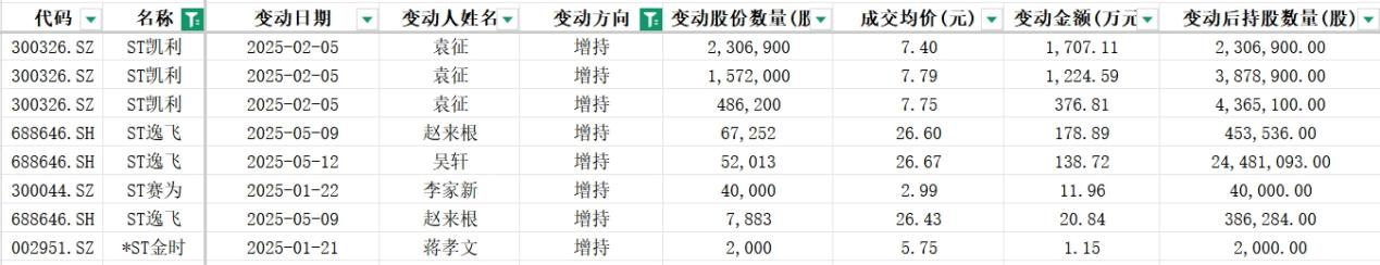 根据同花顺数据,部分ST公司也通过增持本公司股票,包括ST凯利、ST逸飞、ST赛为、*ST金时。