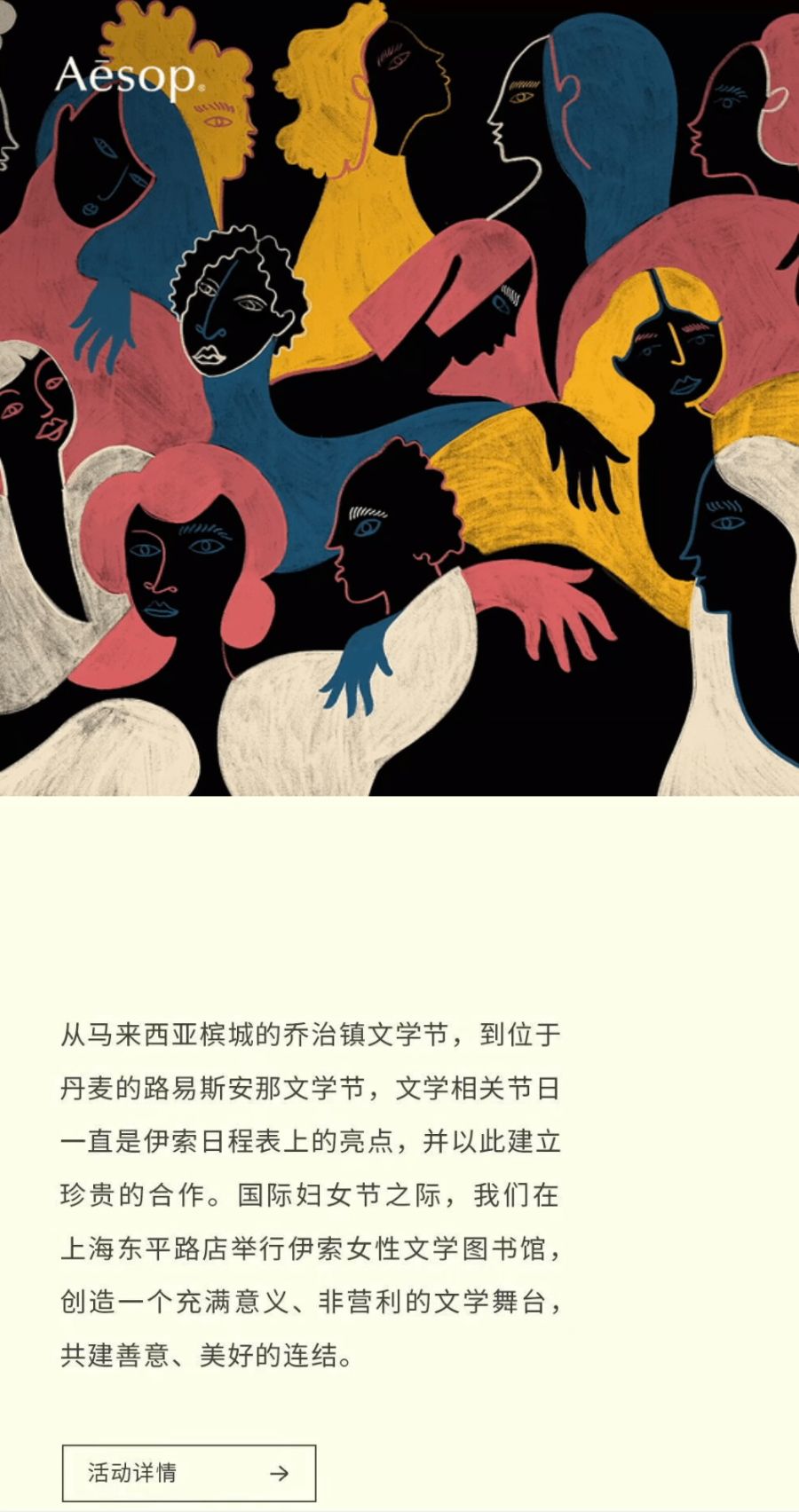 伊索经常在门店举行图书活动,图为一次女性文学图书馆活动(图源:截图自Aesop伊索微信公众号)