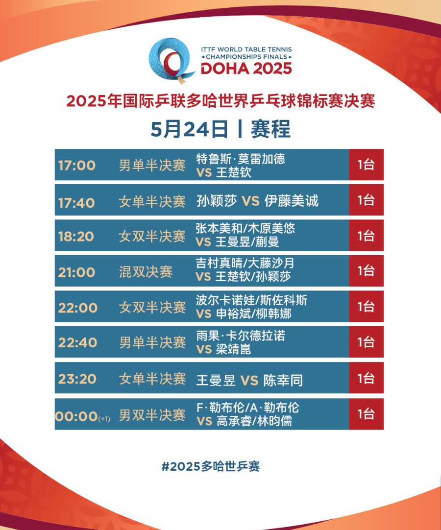 北京时间5月24日下午,多哈世乒赛迎来第八个比赛日,中国军团在混双、女双、男女单打等多条战线全面出击。