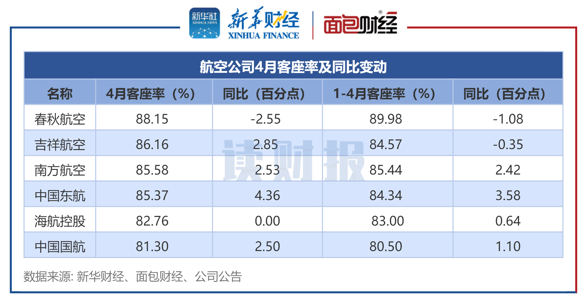 2025年4月,6家航空公司客座率同比多数增长。