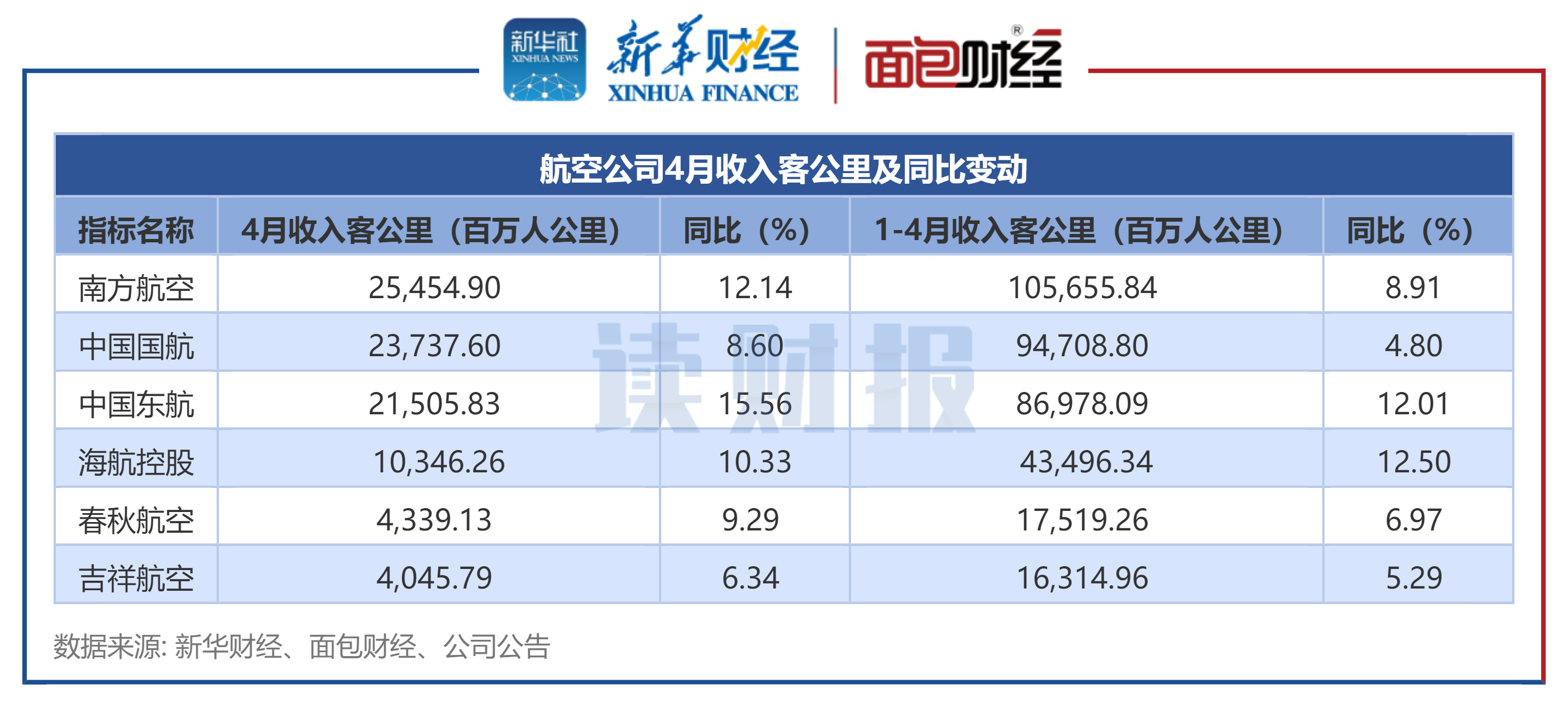 收入客公里:4月收入客公里同比均上升
