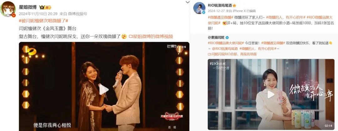 这种时刻像喝多了的状态,让她被网友戏称“微醺姐”。就在剧集完播的一个月后,主打微醺定位的RIO官宣闫妮为品牌大使,又趁热打铁释出一条乐子满满的TVC,一套“微醺组合拳”让品牌的CNY脱颖而出。