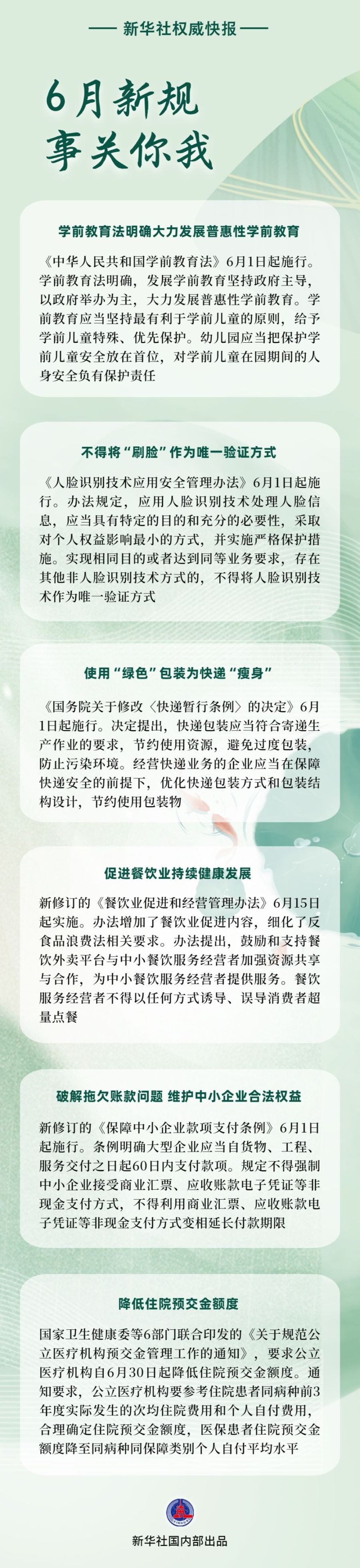 事关学前教育、“刷脸”识别、快递包装……6月起,一批事关你我的新规将施行。一起来看,哪条你最关注?