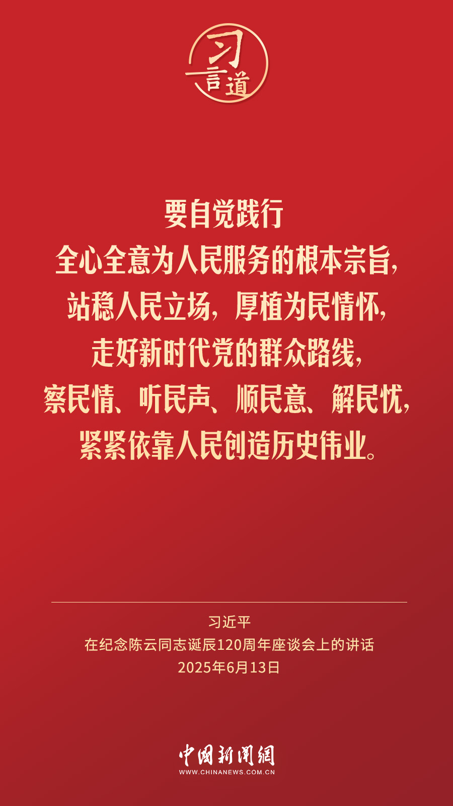 中共中央13日在人民大会堂举行座谈会,纪念陈云同志诞辰120周年。中共中央总书记、国家主席、中央军委主席习近平发表重要讲话强调——