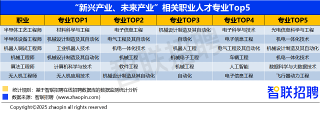 智联招聘2月份发布了《2025新兴产业、未来产业人才热点快报》,报告也显示,低空经济、具身智能、智能制造、芯片领域等新兴和未来产业的职位招聘增速强劲,无人机工程师、机器人调试工程师、算法工程师、机械工程师、半导体工艺工程师、半导体设备工程师等职业的招聘职位数同比增速均在30%以上。