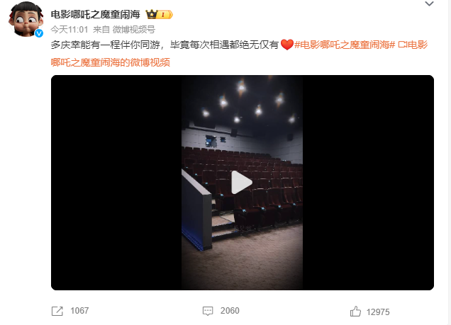 今日上午,《哪吒2》官方微博发布视频,称:“多庆幸能有一程伴你同游,毕竟每次相遇都绝无仅有。”