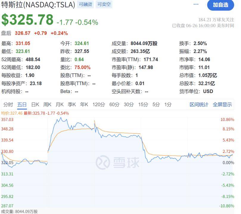反应最迅速的,是资本市场的表现。6月22日,特斯拉在美国奥斯汀推出限量版Robotaxi服务,仅限受邀用户使用。消息一出,特斯拉市值大涨8%。在随后的几天里,特斯拉的市值又回撤到消息公布之前的水平。