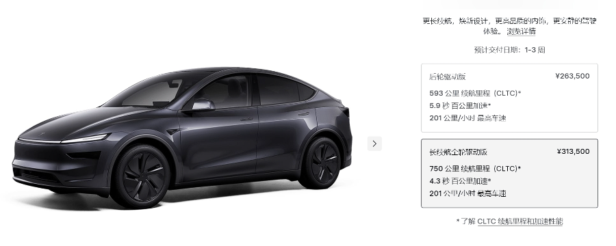其中,Model 3长续航全轮驱动版CLTC续航从713公里增至753公里,百公里加速从4.4秒提升至3.8秒,售价上涨1万元,28.55万元起;而于1月发布的焕新Model Y长续航全轮驱动版CLTC续航从719公里增至750km,起售价保持31.35万元不变。