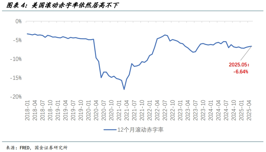其次,动摇美股根基的问题并没有得到解决。AI叙事动摇:基座模型更新放缓,能力进步及商业化进程延长。贫富差距仍在扩大:美股上涨结构分化,关税(穷人税)和减税(富人税)可能加剧贫富差距和美国政治信任问题。财政问题持续:滚动赤字率未明显收缩,短期利好美股但长期利空美元资产;同时外国投资者还需额外考虑汇兑损失。