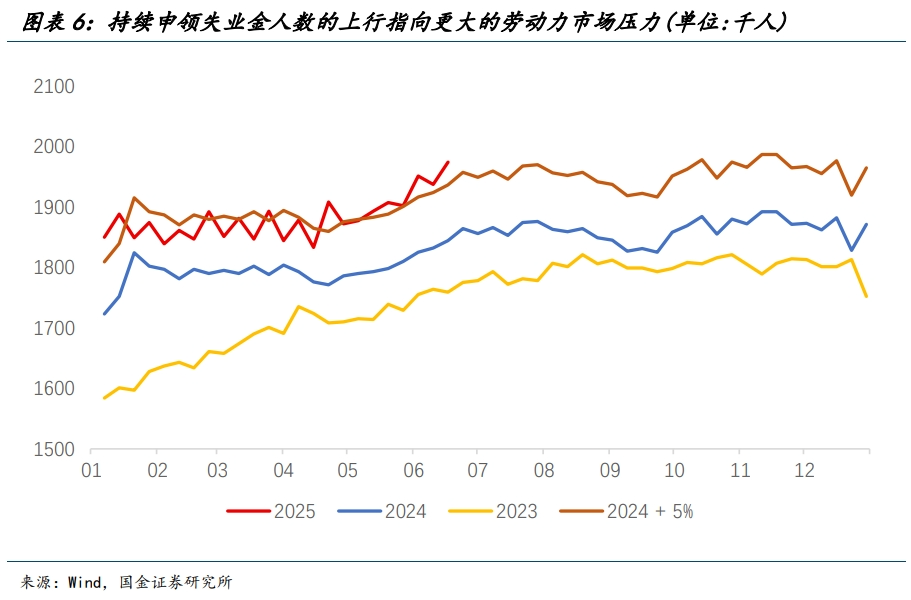 首先,从短期来看,美国经济走弱的迹象越发清晰,居民消费的透支效应进一步展现。美国越来越多的数据正在发出“警报”,例如持续申领失业金人数再次大幅高于我们设定的5%偏离值之上,劳动力市场压力将变得更大。