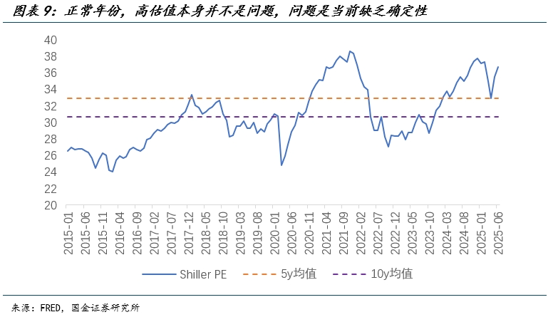 尽管从Shiller PE的角度看美股估值依然偏贵,但是过去数十年的“肌肉记忆”使得美股投资者不刻意关注估值问题。即估值本身并不令人担忧,担忧的是公司增长缺乏持续性,或整体经济环境不确定加大,而这正是美股多年未见但当下正在经历的情形。