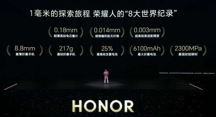 荣耀CEO李健在发布会上表示,这次行业首发25%硅含量电池,完美解决了折叠机电池的不可能三角。