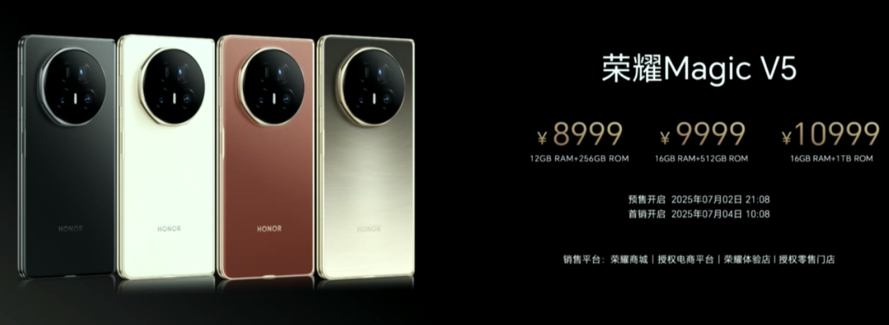 荣耀Magic V5发布:轻至217g,价格8999元起