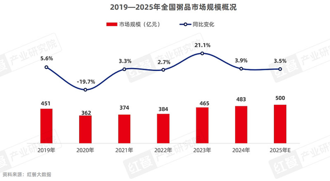 01.粥品市场规模保持稳健增长,2025年有望达到500亿元