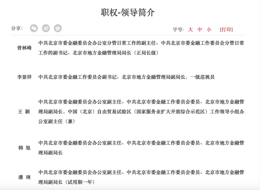 近期,北京市地方金融管理局官网最新信息显示,曾林峰已正式履新,曾林峰正式出任中共北京市委金融委员会办公室分管日常工作的副主任、中共北京市委金融工作委员会分管日常工作的副书记、北京市地方金融管理局局长(正局长级)。