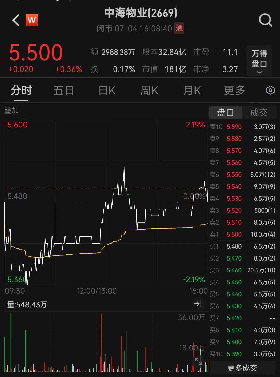 截至7月4日收盘,中海物业市值为181亿港元