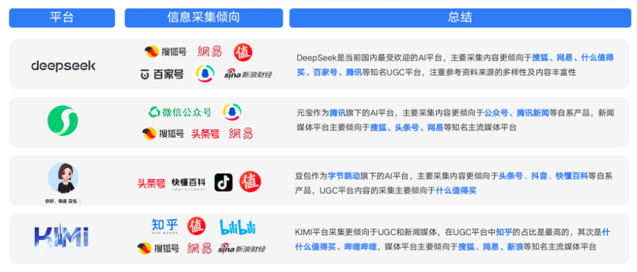 (GEO服务商总结的不同AI信源收录特点,依此投放内容)
