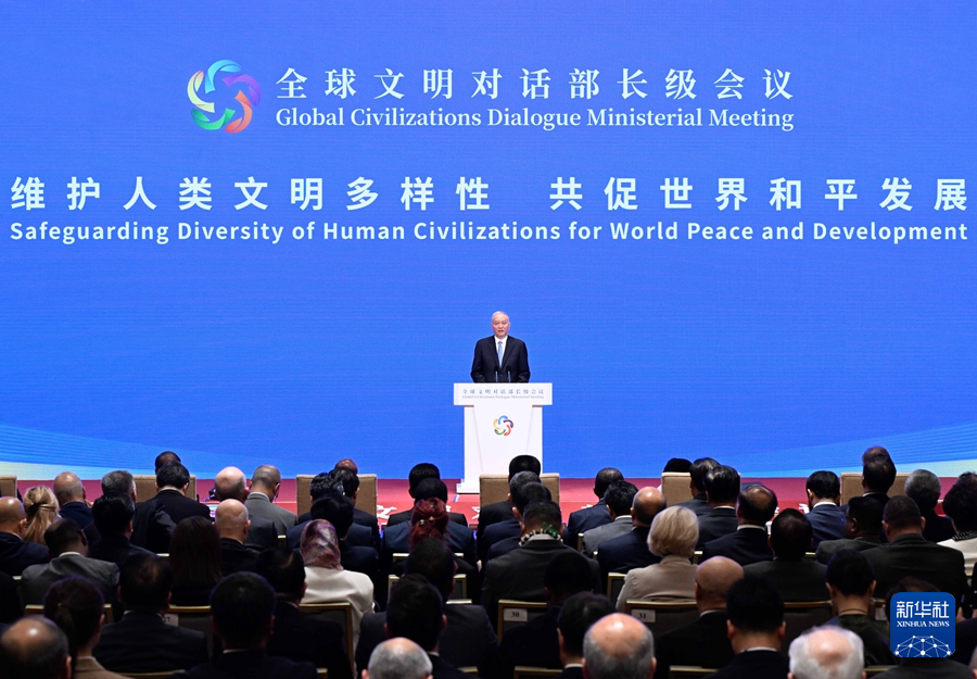 10日下午,全球文明对话部长级会议在京开幕。中共中央政治局委员、中宣部部长李书磊在开幕式上宣读了习近平主席的贺信。中共中央政治局常委、中央书记处书记蔡奇出席开幕式并发表主旨讲话。