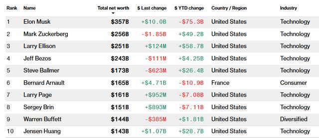 本周的涨幅使黄仁勋在亿万富豪榜单的排名,已跃居至了全球第十位,仅次于伯克希尔哈撒韦公司首席执行官、被誉为“奥马哈先知”的巴菲特——后者目前的最新身家约为1440亿美元。