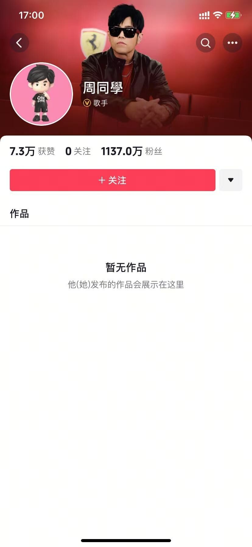 值得一提的是,此前,周杰伦已入驻快手平台,昵称同样为“周同学”,抖音是周杰伦在全网注册的第二个中国社交媒体平台。